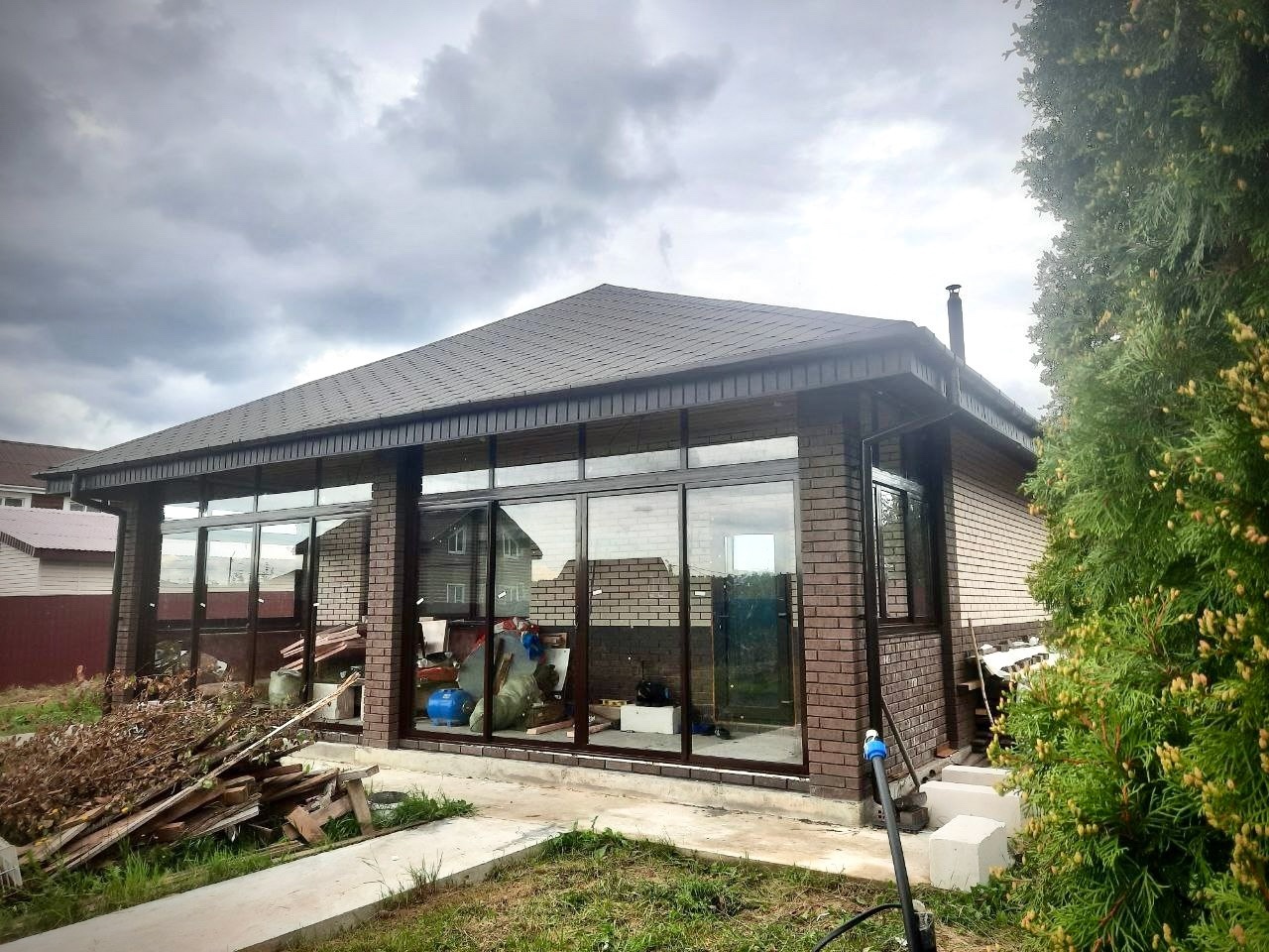 Теперь не страшны ни дождь, ни снег, ни ветер. Можно использовать веранду круглогодично.